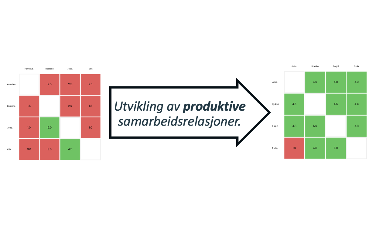 • Relasjoner: Hvordan kan vi styrke relasjonene – til innbyggerne, mellom fagfolk og på ledernivå?